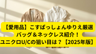 こすぱっしょんゆりえさんが実際に愛用するバッグ・ネックレス・ユニクロU/Cの狙い目アイテムを徹底紹介!プチプラでおしゃれに見える秘訣も解説します。